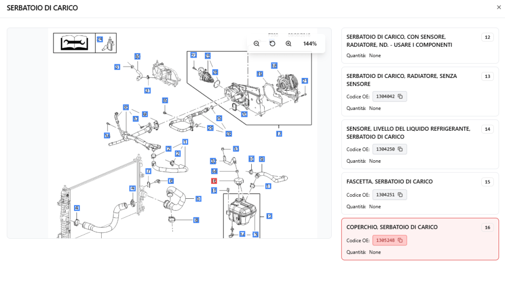 - Naviga le banche dati, seleziona i ricambi corretti e restituisce spaccati, codici OE/AM, immagini e listini.